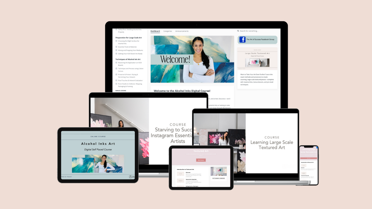 ✅ Lifetime Access to 3 Signature Courses – Over 40+ step-by-step video lessons covering alcohol inks, large-scale textured art, and building your art brand and business. ✅ Complete Materials Lists & Exclusive Supplier Discounts – Know exactly what to use and where to get it—no more guesswork. ✅ Bonus Lessons + PDF Business Tools – Go deeper into your art practice while building a foundation for long-term success. ✅ Private Artist Communities – Connect with fellow creators, share your wins, and stay motivated through every phase of your journey.